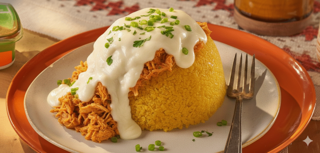 Foto ilustrativa. Leve e saboroso ! Cuscuz recheado com peito de frango desfiado e catupiry cremoso.