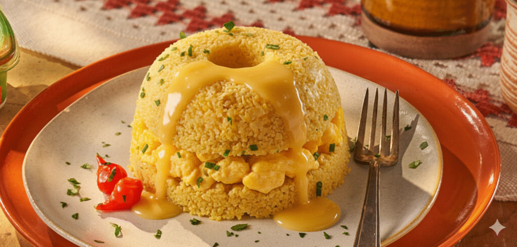 Foto ilustrativa. Cuscuz 200g, Ovos 2, Manteiga 20g